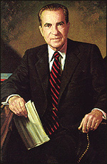 Born in California in 1913, Nixon had a brilliant record at Whittier College and Duke University Law School before beginning the practice of law. In 1940, he married Patricia Ryan; they had two daughters, Patricia (Tricia) and Julie. During World War II, Nixon served as a Navy lieutenant commander in the Pacific.