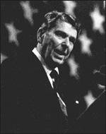 At the end of his two terms in office, Ronald Reagan viewed with satisfaction the achievements of his innovative program known as the Reagan Revolution, which aimed to reinvigorate the American people and reduce their reliance upon Government. He felt he had fulfilled his campaign pledge of 1980 to restore "the great, confident roar of American progress and growth and optimism."